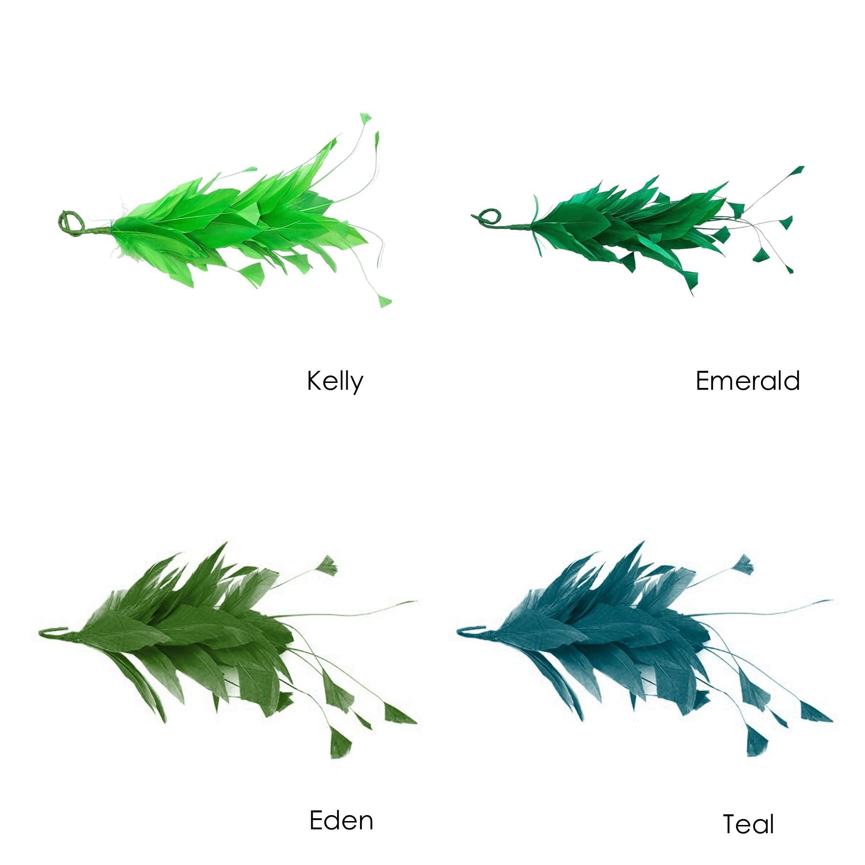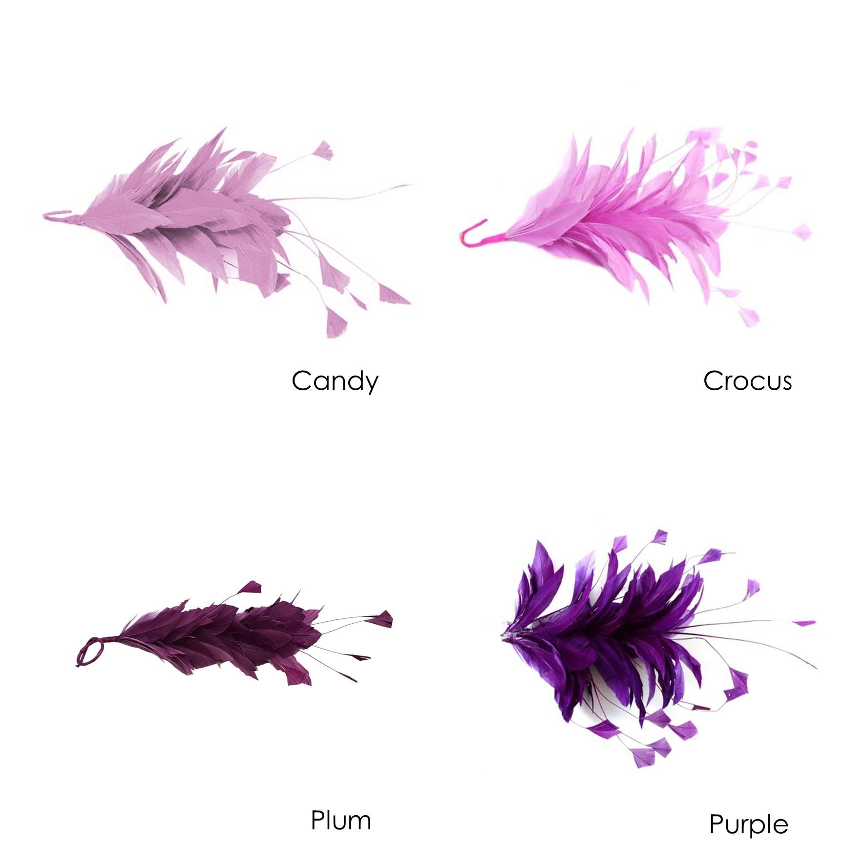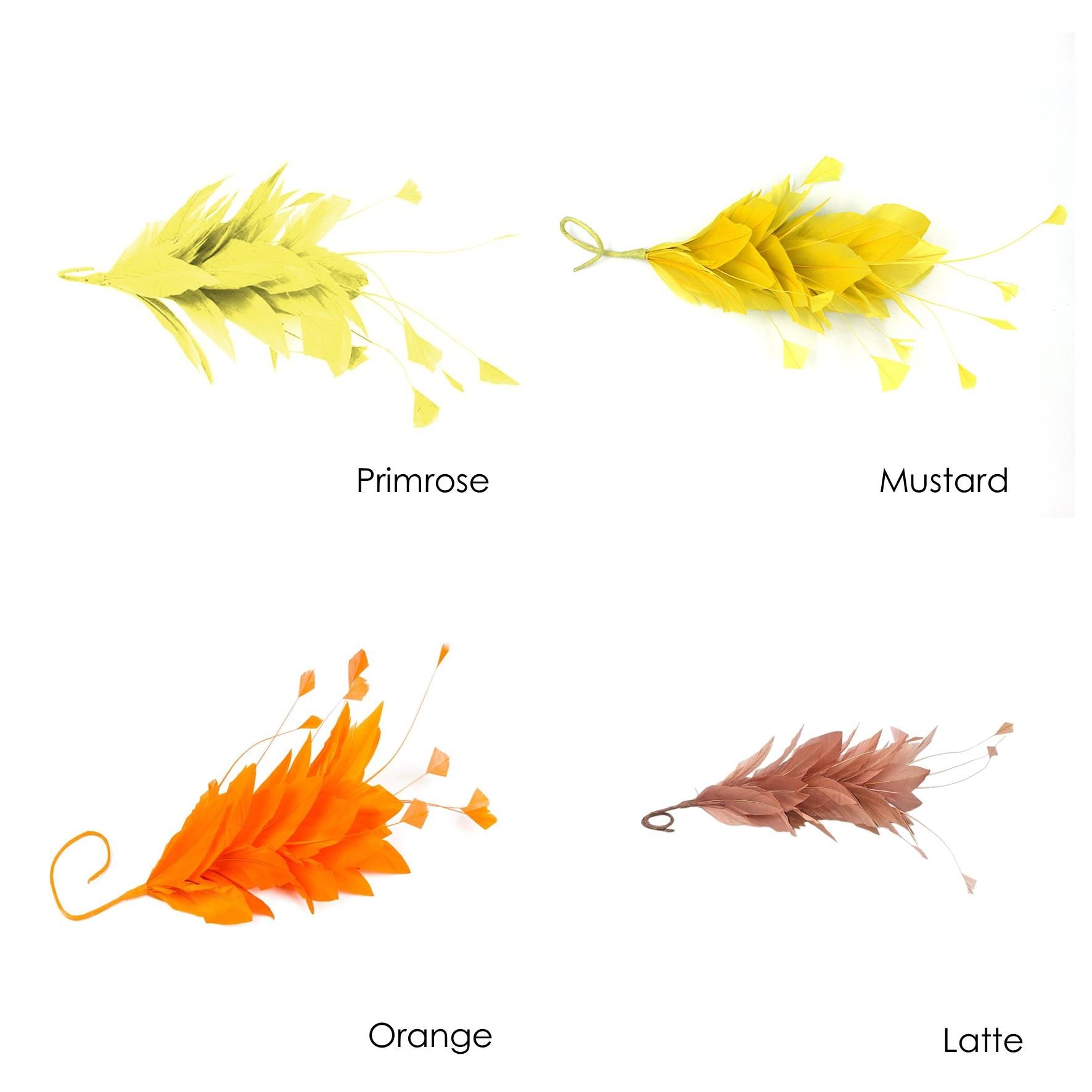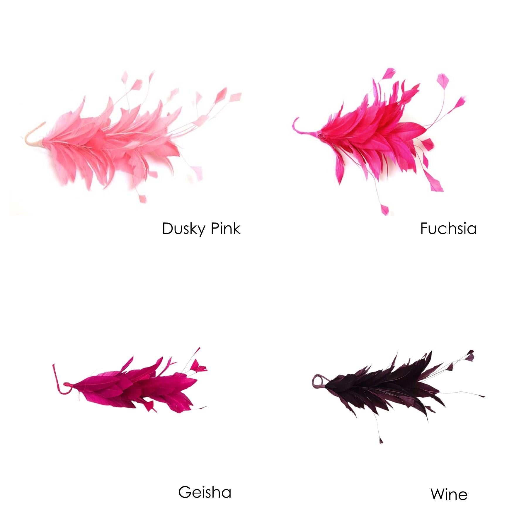 Brilliantly versatile goose feather mount with random delicate stripped coq feather heads mounted onto craft wire giving you the ability twist into bends and circles, it runs in a great range of colours covering a majority of our running pallet and measures up to 15cm long and 10cm wide.
