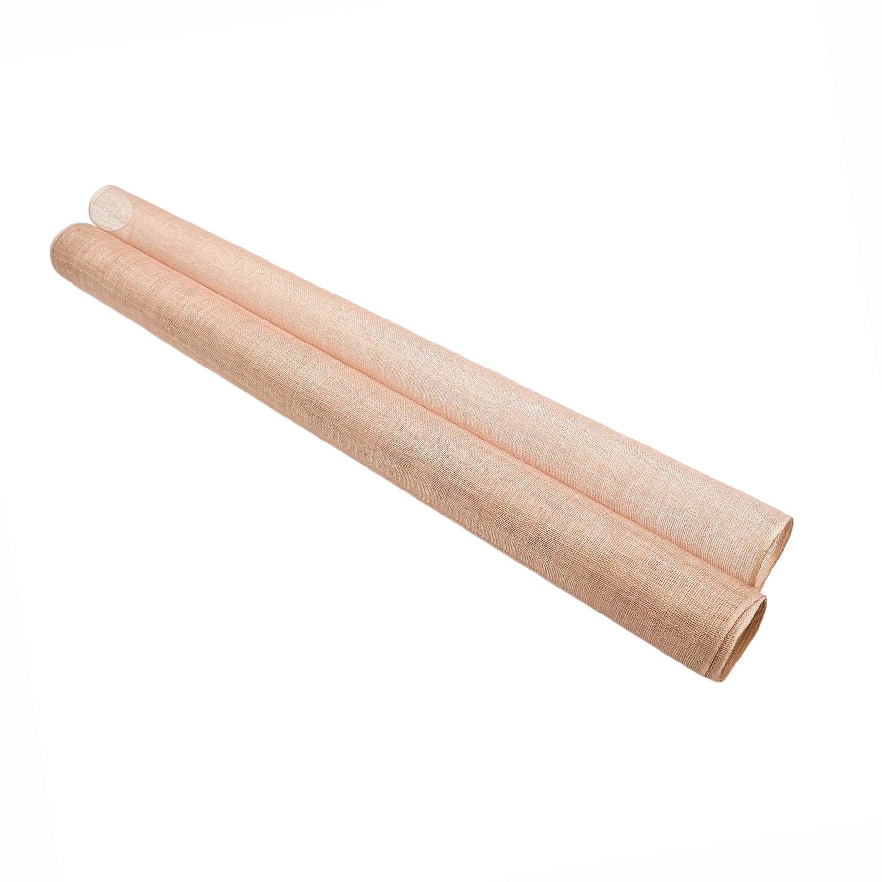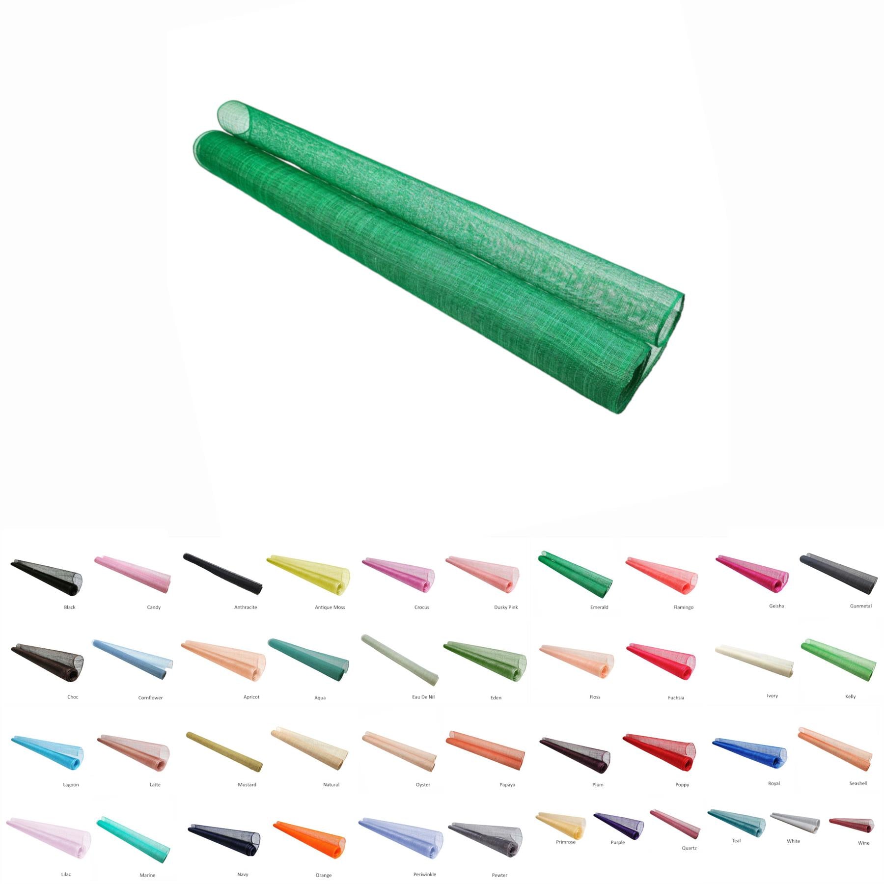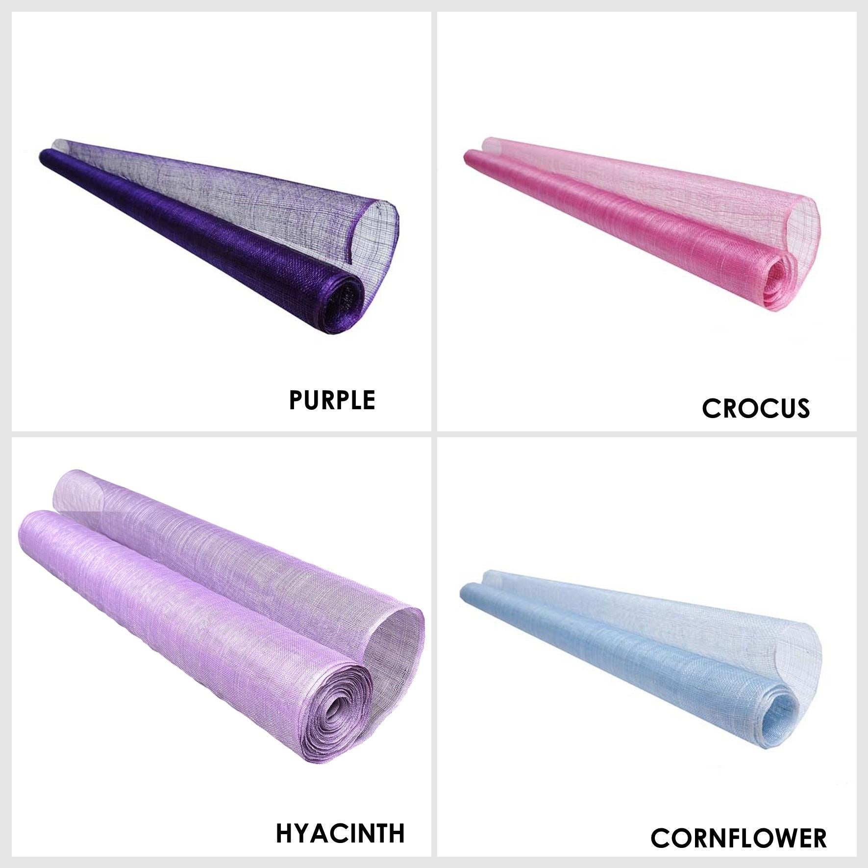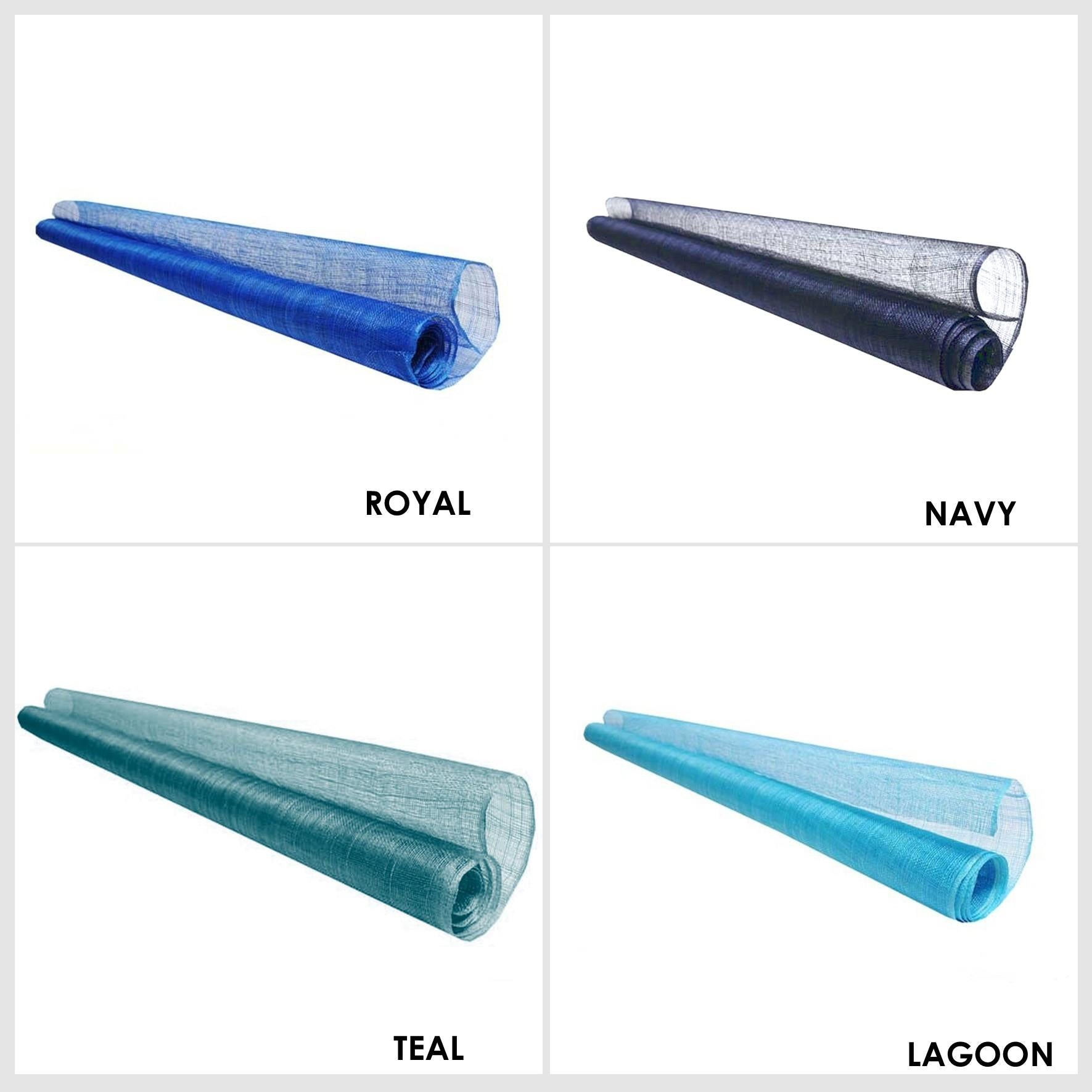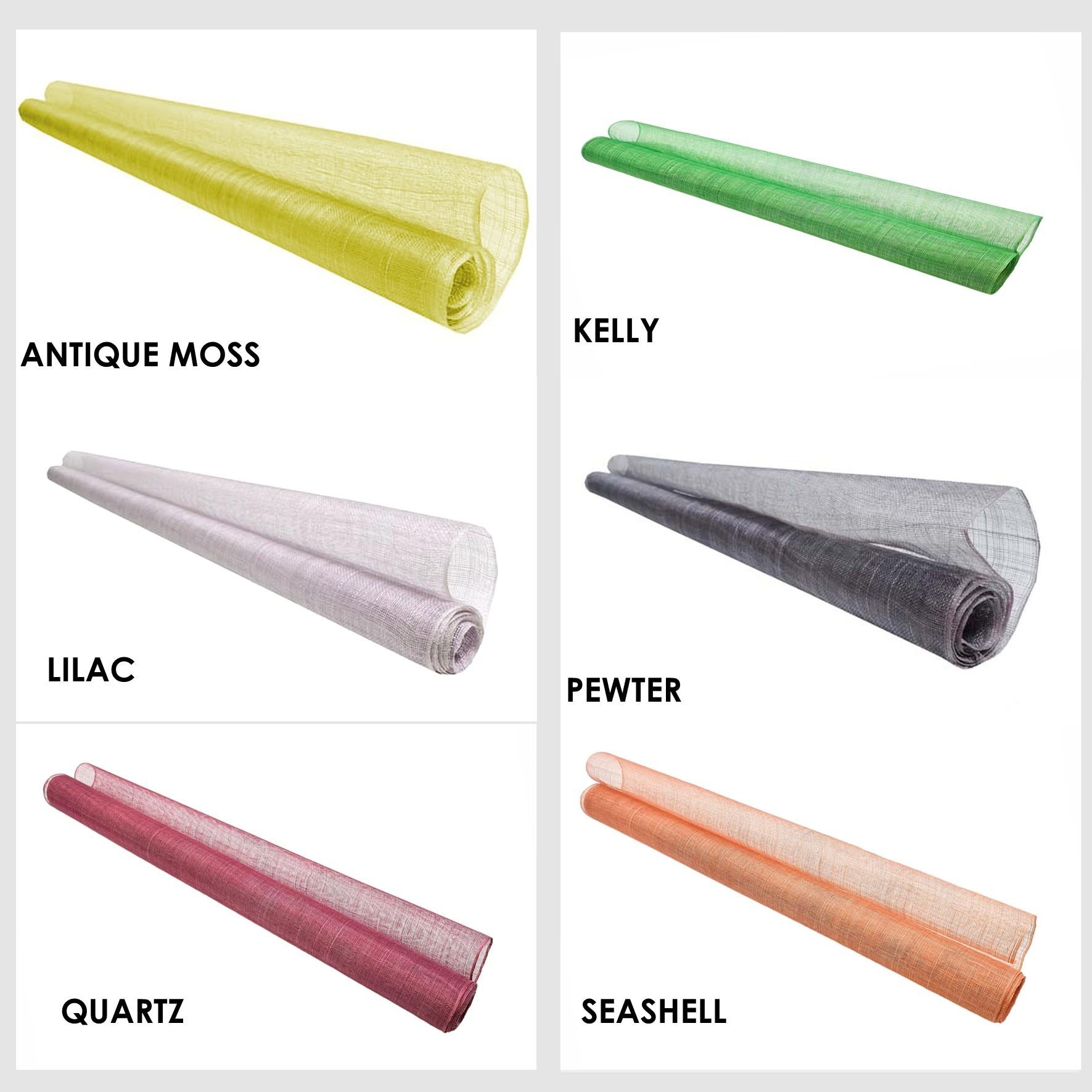 Sinamay fabric, probably the most used material for creating many millinery creations hats and fascinators. This fabric made from the fine fibres of the abaca tree are hand selected and woven carefully together to form this material. Woven only on machines rather than by hand, this sinamay is the most consistent and fault free sinamay you can find. The selection process and careful weaving produces a sinamay with very little flaws, knots and weave faults always found in hand woven sinamay. A medium stiffener finish is applied to allow this material to be used both in making hats and millinery ideas and also as a trim, the results are truly endless. The openness of the weave gives ease of movement and the ideas are endless with this material. A great range of colours covering a majority of our running pallet, this most popular material is sold by the metre and measures 90cm wide. If you require more than one metre we will always supply on continual lengths.