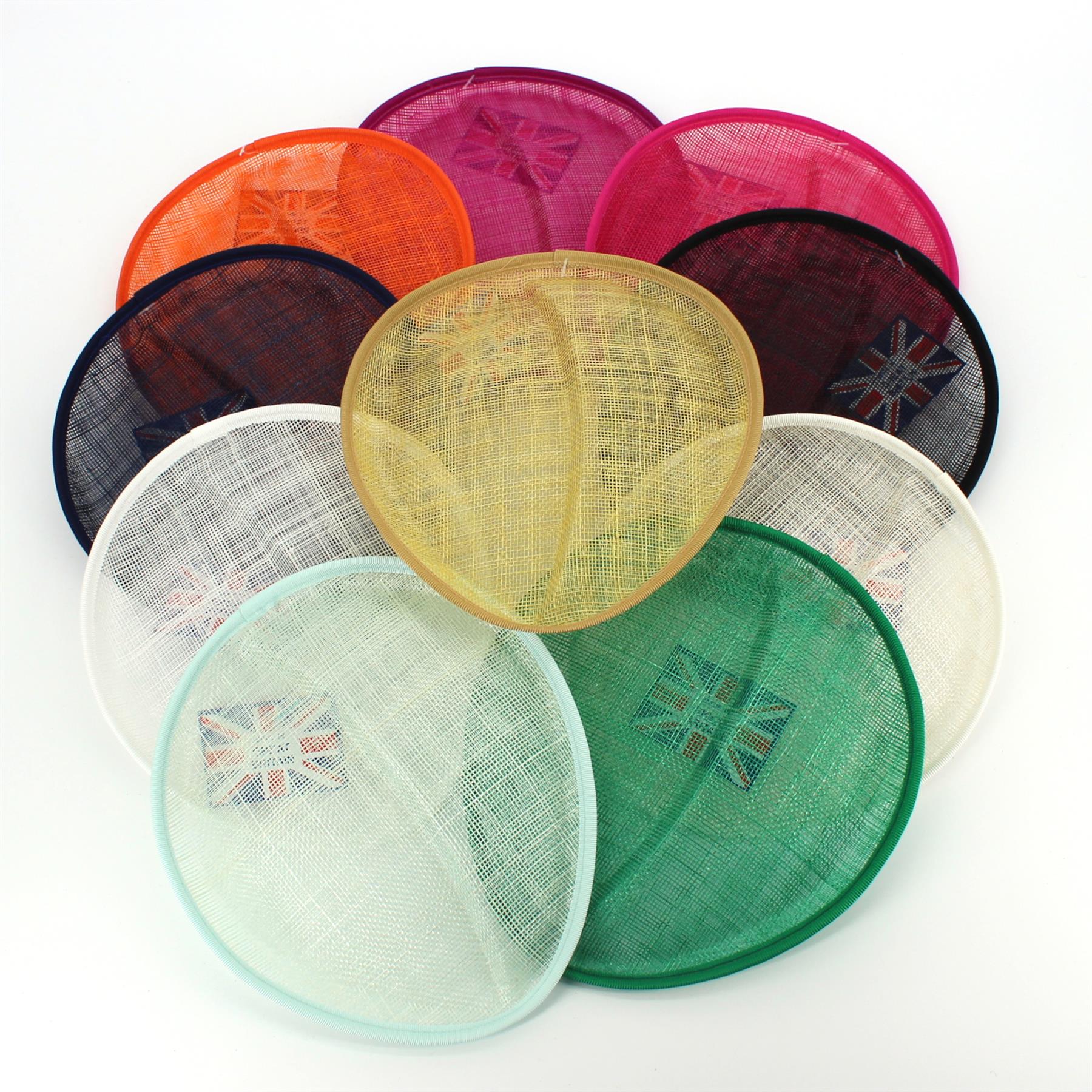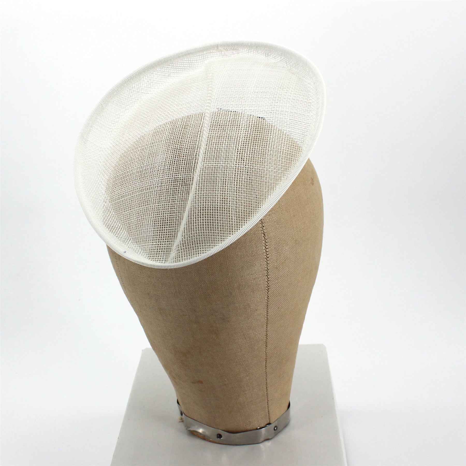 Sinamay fascinator base has an enchanting shape, almost like a coffee bean thanks to the soft teardrop shape and central pleat. Available in a range of stunning colours. Measures 20.5cmx18cm at it's widest points and is approximately 1.5cm deep. You will need to add your own headband, comb, clip or elastic to make this fit. Does not come with an inner ribbon band.