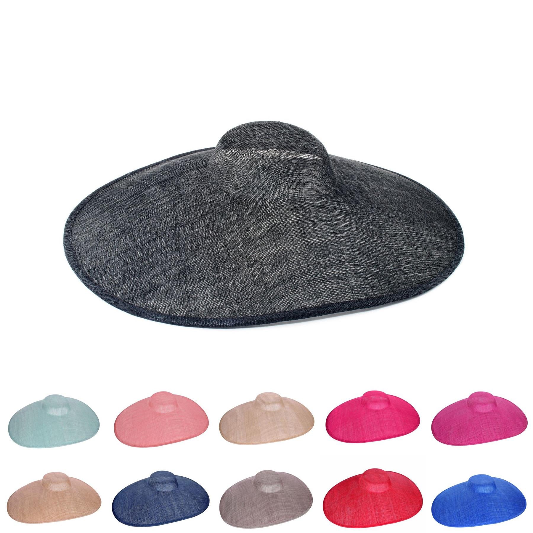 A broad and huge millinery hat base sweeping smoothly down at the sides creating a beautifully elegant finish, with a slight deepening in the middle to take the head, can be warn and trimmed in many ways to accentuate the beautiful shape. Available in a range of classic colours, this millinery hat base measures about 44cm front to back and giving it that sweeping broadness the side to side measures 49cm. You will need to add your own headband, comb, clip or elastic to make this fit. Does not come with an inner ribbon band.
