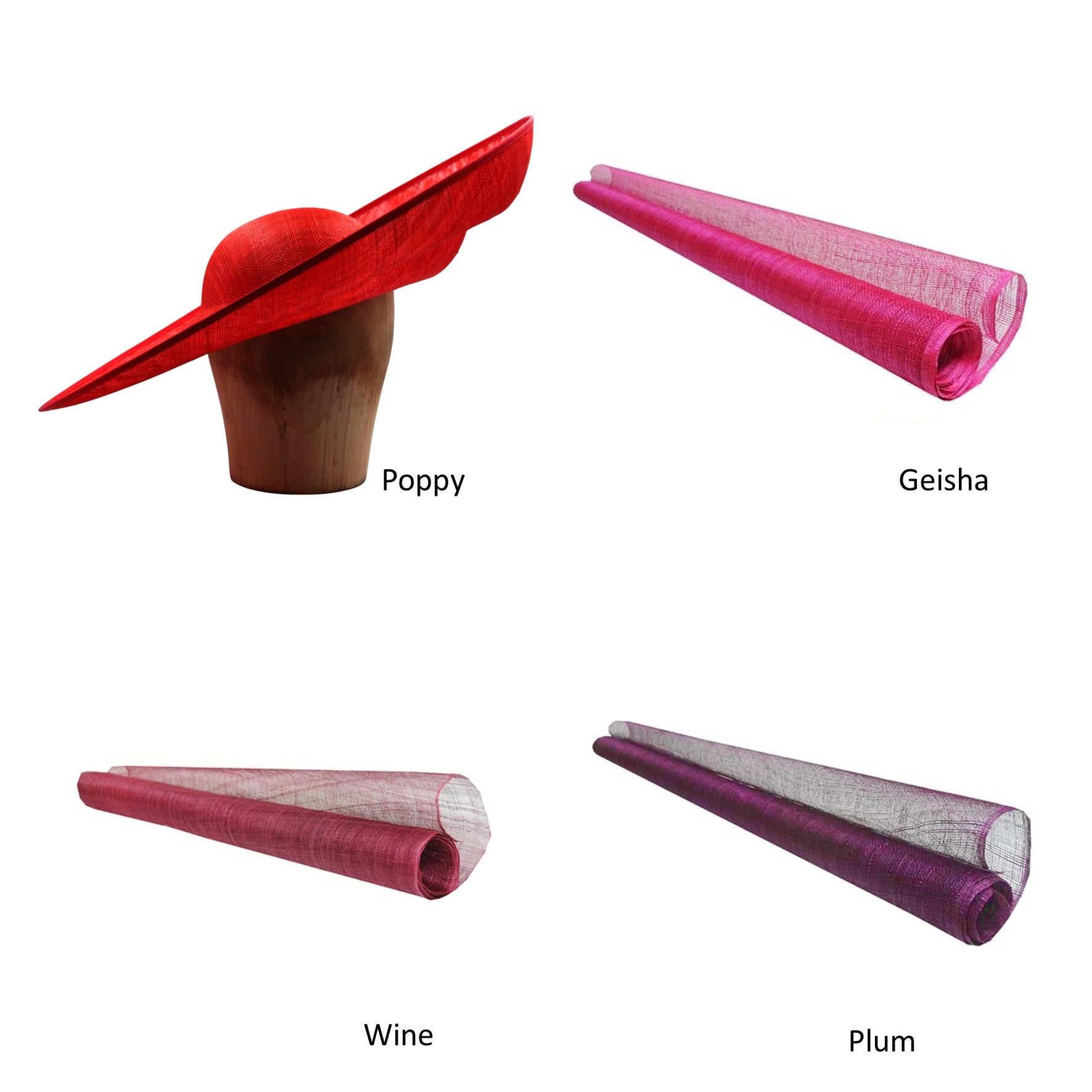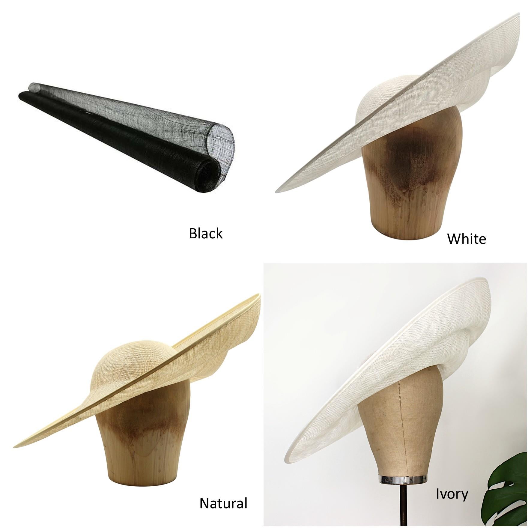 Made-to-order in the UK in your chosen colour of sinamay. Lead-time: 7-13 days - Order by midnight Tuesday for dispatch the following Wednesday.