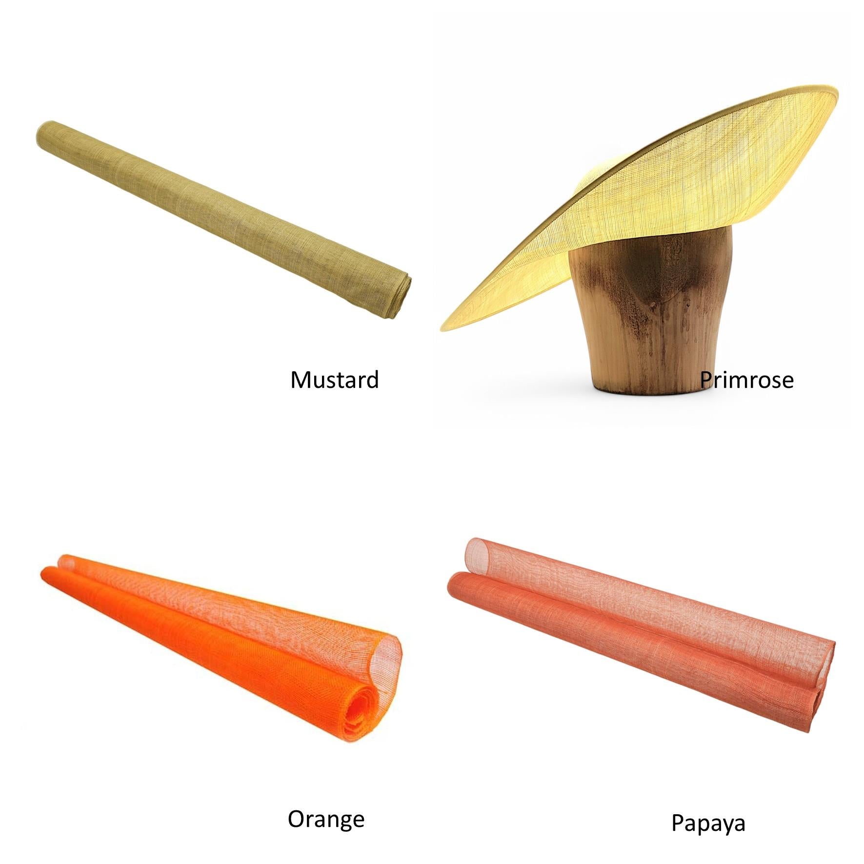 Made-to-order in the UK in your chosen colour of sinamay. Lead-time: 7-13 days - Order by midnight Tuesday for dispatch the following Wednesday.