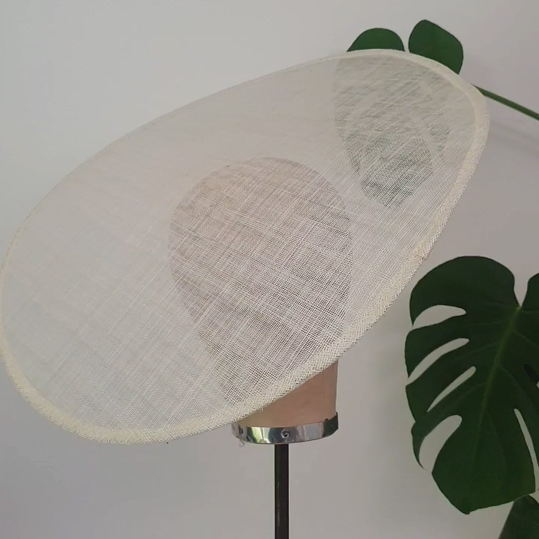 A huge sinamay circle with matching sinamay binding lends itself to many ideas, can be used as part of a larger project or capable of being the base of a fascinator on its own. Made using 2 layers of our quality sinamay, this fascinator and hat base measures about 44cm in diameter. You will need to add your own headband, comb, clip or elastic to make this fit. Does not come with an inner ribbon band.
