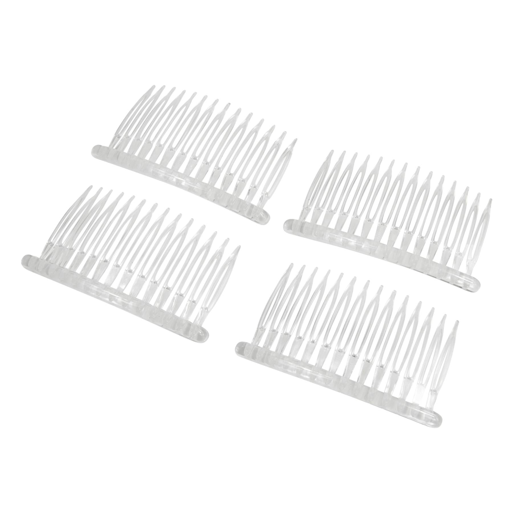 One split tooth plastic comb with raised edge ideal for fixing items to without interfering with the function of the comb. For sewing to fascinators or hats. Length: 75mm, Width: 45mm
