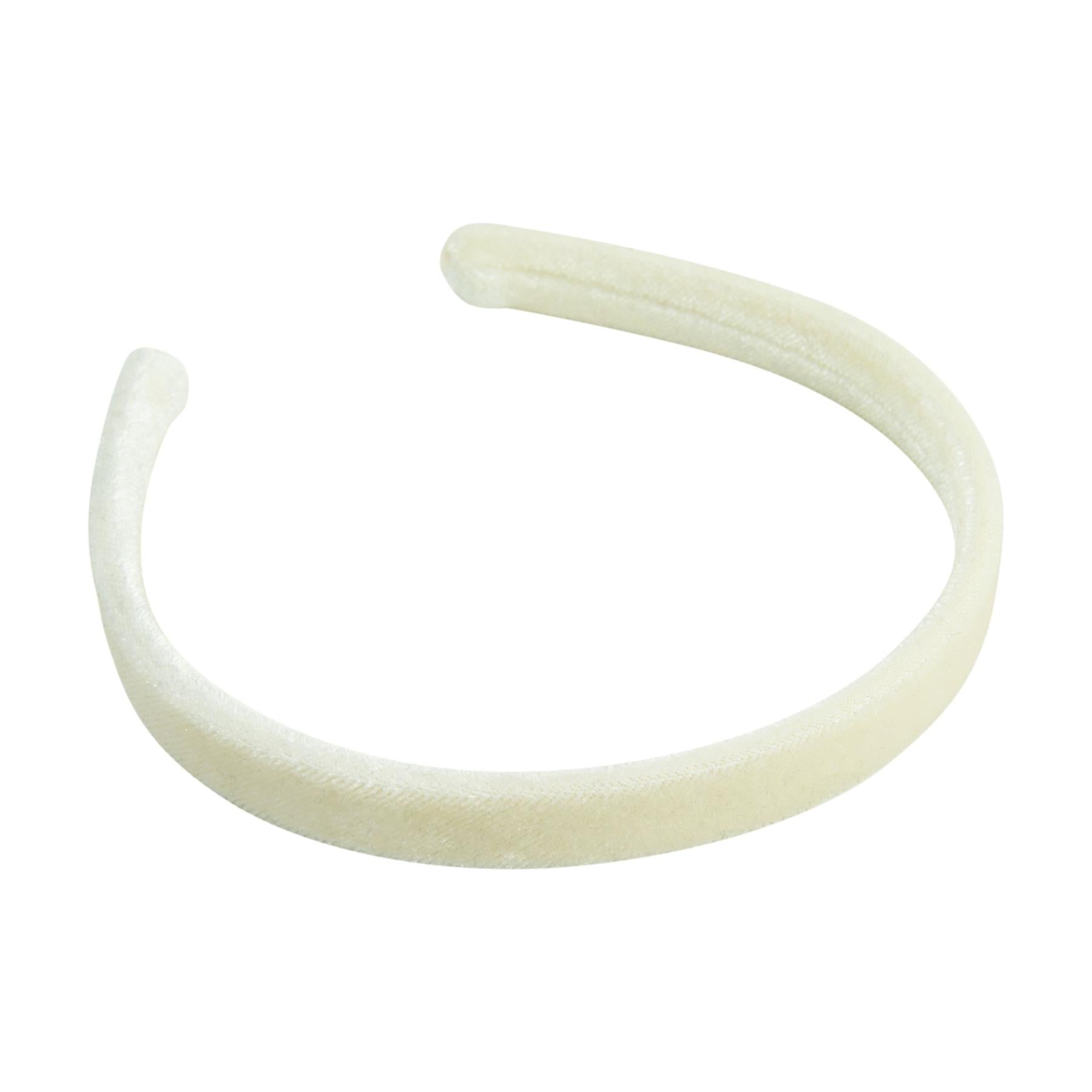 Velvet covered headband with flat face and slight rounded edges. Width: 12mm (1/2")
