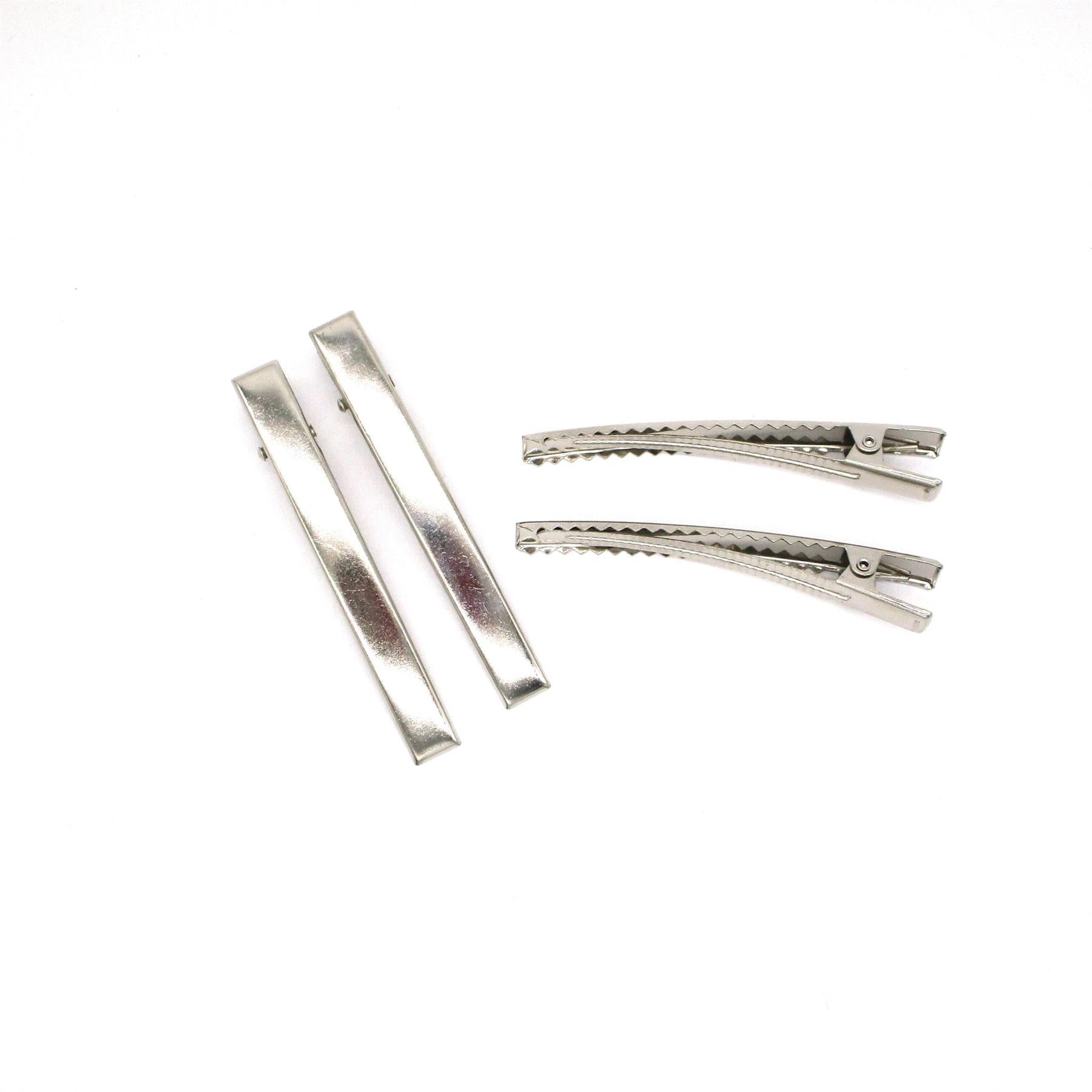 1. 8cm long 2. Teeth for gripping 3. Nickle free. Large flat silver crocodile clip with teeth. Sold as pack of 4