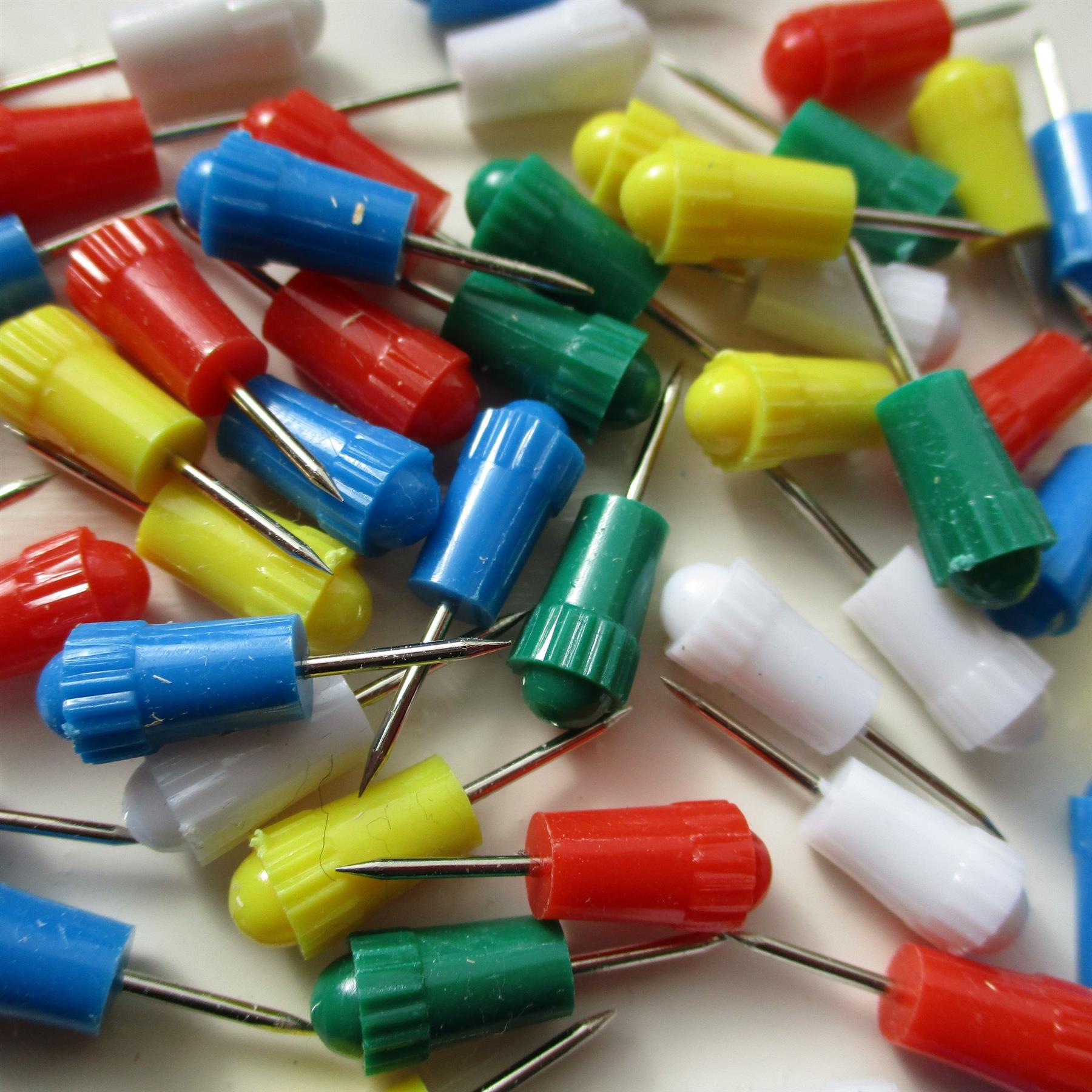 1. 50pcs 2. Strong pins, don't bend 3. Plastic box container. Plastic headed blocking pins, developed with a stronger pin than many other blocking pins, with a longer tip and easy grip top. Sold with reusable plastic box, 50pcs per box.