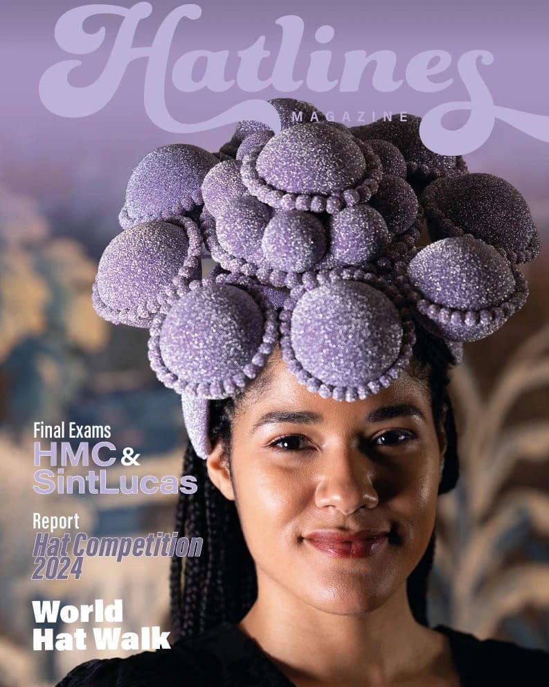 Hatlines is the glossy magazine of the NHV (Dutch Hat Association) that appears four times a year and is sent to all members. Each magazine has a number of regular sections, such as an agenda of hat & fashion events and exhibitions at home and abroad, technique explanation and shopping tips for hat designers.